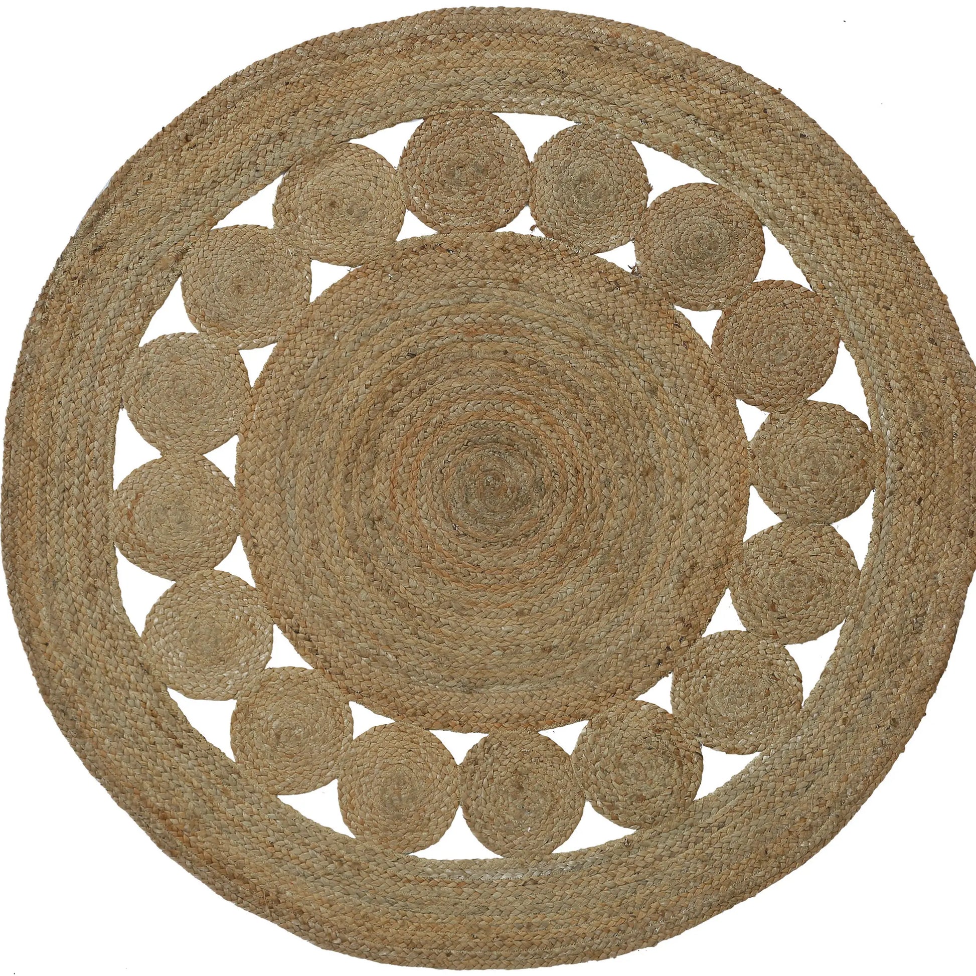 This stylish circular rug uses warm browns creating a beautiful rug perfect for adding a dash of style to any room. Made of natural jute by artisans.
